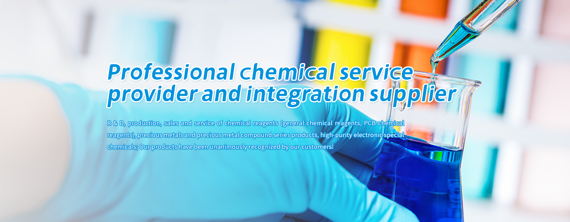 Foshan Sanshui Delta Chemical Co., Ltd. was founded in 2003, covers an area of nearly 80 mu, has the international advanced special chemical customized production lines, is currently the industry's most automated and large-scale production base. Today, delta chemical industry was advanced chemical professional service providers, integration of suppliers, mainly engaged in chemical reagents, including general chemical reagent, PCB with chemical reagents), precious metals and precious metals compound series products, high purity electronic specialty chemicals research and development, production, sales and service, at the same time provide custom development and technical service of other specialty chemicals. Our business covers electronic information, new energy, daily chemical, printing and cosmetics, medical and health care, sanitary hardware, scientific research and testing industries. With rich practical experience, keen market insight and mature solutions, Delta chemical takes customers as partners and provides customers with a full range of one-stop supply chain solutions and technical support.